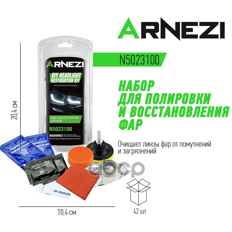 Чтобы купить Набор для полировки и восстановления фар ARNEZI ARNEZI арт. N5023100 оптом по цене 693 руб., свяжитесь с поставщиком. Компания поставщик — For-cars (ИП «Иванов Алексей Валентинович») из города Москва. Доставка возможна самовывоз, транспортной компанией, авиатранспортом, железной дорогой. Способы оплаты: наличными, безналичная оплата, электронные деньги.