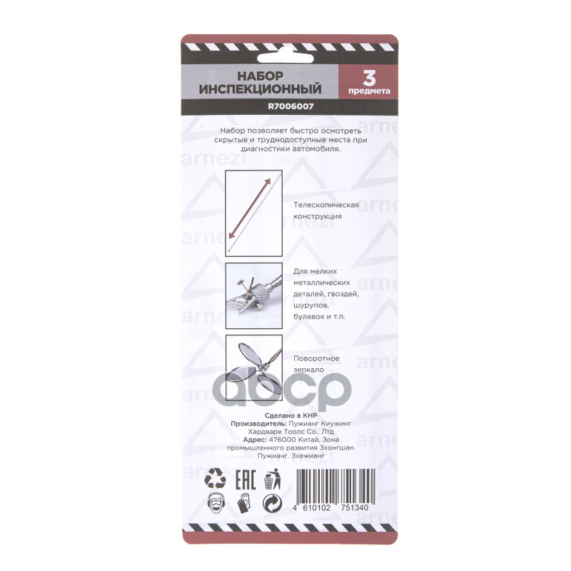 Чтобы купить Набор инспекционный ARNEZI арт. R7006007 оптом по цене 493 руб., свяжитесь с поставщиком. Компания поставщик — For-cars (ИП «Иванов Алексей Валентинович») из города Москва. Доставка возможна самовывоз, транспортной компанией, авиатранспортом, железной дорогой. Способы оплаты: наличными, безналичная оплата, электронные деньги.