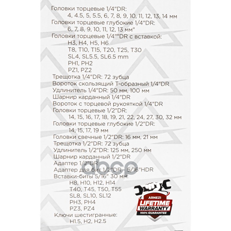 Набор инструментов 94 пр. 1/4DR, 1/2DR ARNEZI.