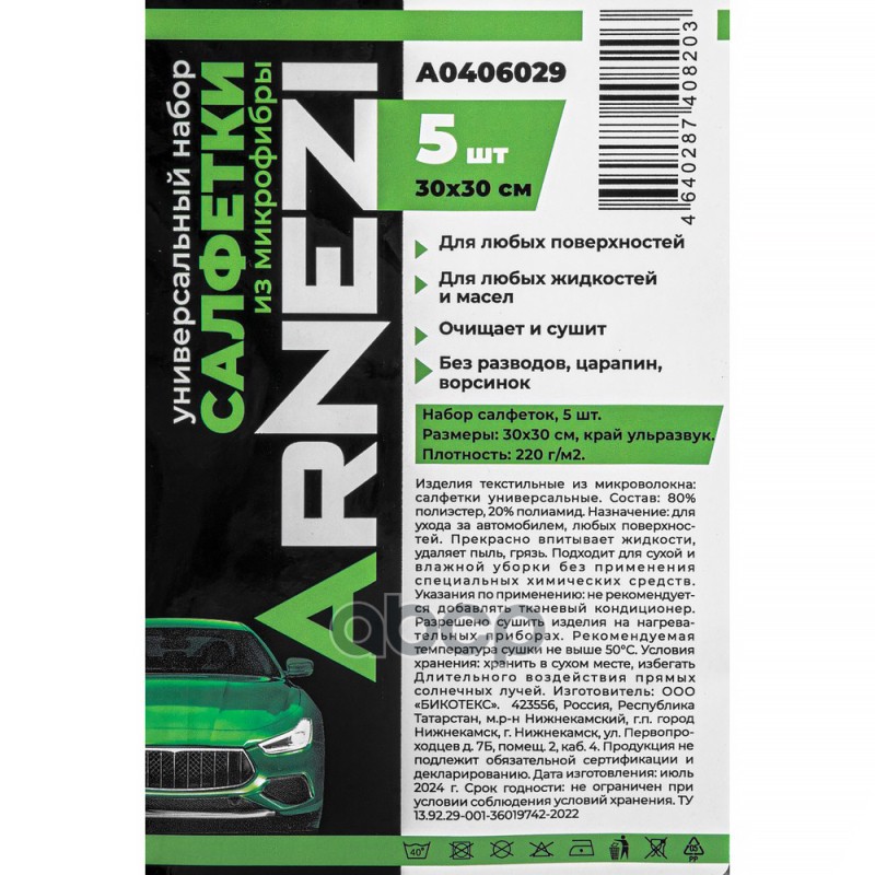 Чтобы купить Набор салфеток из микрофибры 5 шт, размер 30х30, к ARNEZI арт. A0406029 оптом по цене 138 руб., свяжитесь с поставщиком. Компания поставщик — For-cars (ИП «Иванов Алексей Валентинович») из города Москва. Доставка возможна самовывоз, транспортной компанией, авиатранспортом, железной дорогой. Способы оплаты: наличными, безналичная оплата, электронные деньги.