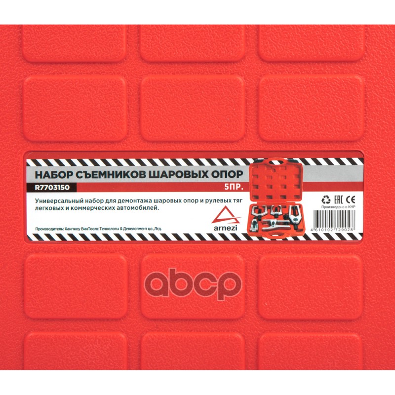 Чтобы купить Набор съемников шаровых опор 5пр. ARNEZI ARNEZI арт. R7703150 оптом по цене 4739 руб., свяжитесь с поставщиком. Компания поставщик — For-cars (ИП «Иванов Алексей Валентинович») из города Москва. Доставка возможна самовывоз, транспортной компанией, авиатранспортом, железной дорогой. Способы оплаты: наличными, безналичная оплата, электронные деньги.