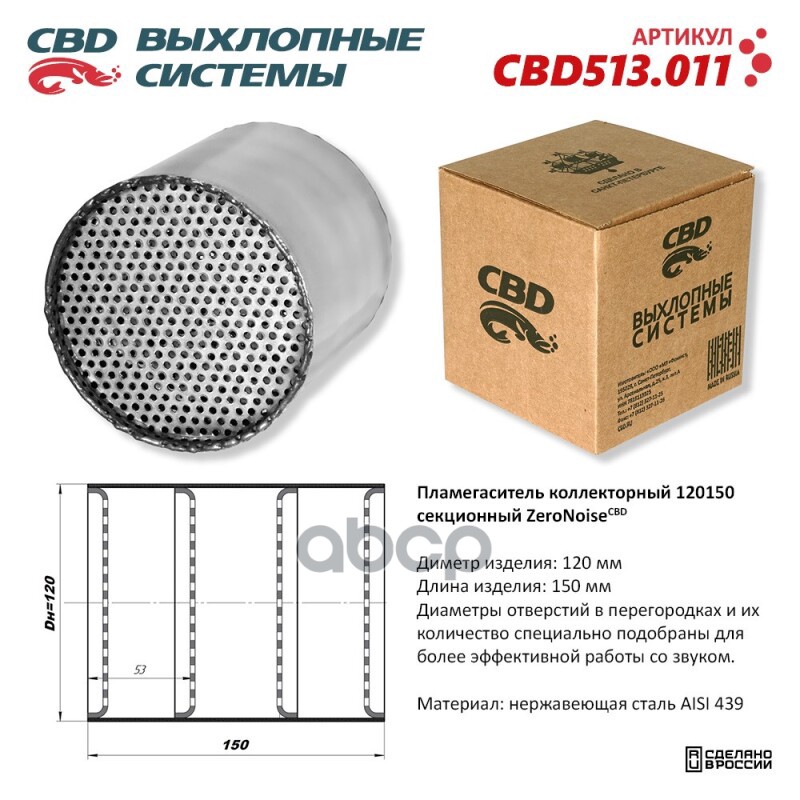 Чтобы купить Пламегаситель коллекторный 120150 секционный из Нерж. стали CBD арт. CBD513011 оптом по цене 1962 руб., свяжитесь с поставщиком. Компания поставщик — For-cars (ИП «Иванов Алексей Валентинович») из города Москва. Доставка возможна самовывоз, транспортной компанией, авиатранспортом, железной дорогой. Способы оплаты: наличными, безналичная оплата, электронные деньги.