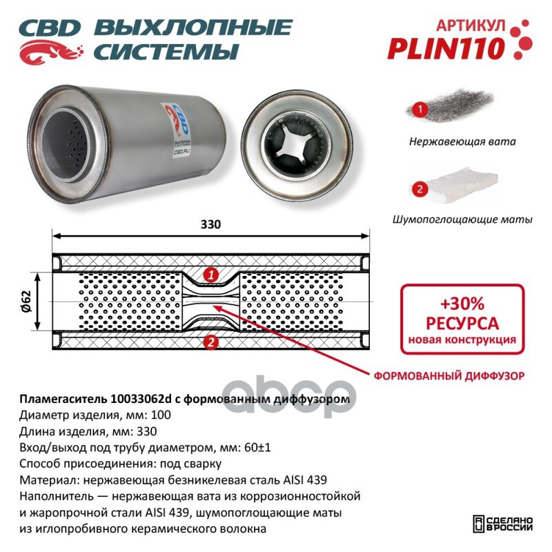 Чтобы купить Пламегаситель универсальный 10033062d с перфорированным диффузором, из Нержавеющей стали. CBD арт. PLIN110 оптом по цене 2892 руб., свяжитесь с поставщиком. Компания поставщик — For-cars (ИП «Иванов Алексей Валентинович») из города Москва. Доставка возможна самовывоз, транспортной компанией, авиатранспортом, железной дорогой. Способы оплаты: наличными, безналичная оплата, электронные деньги.