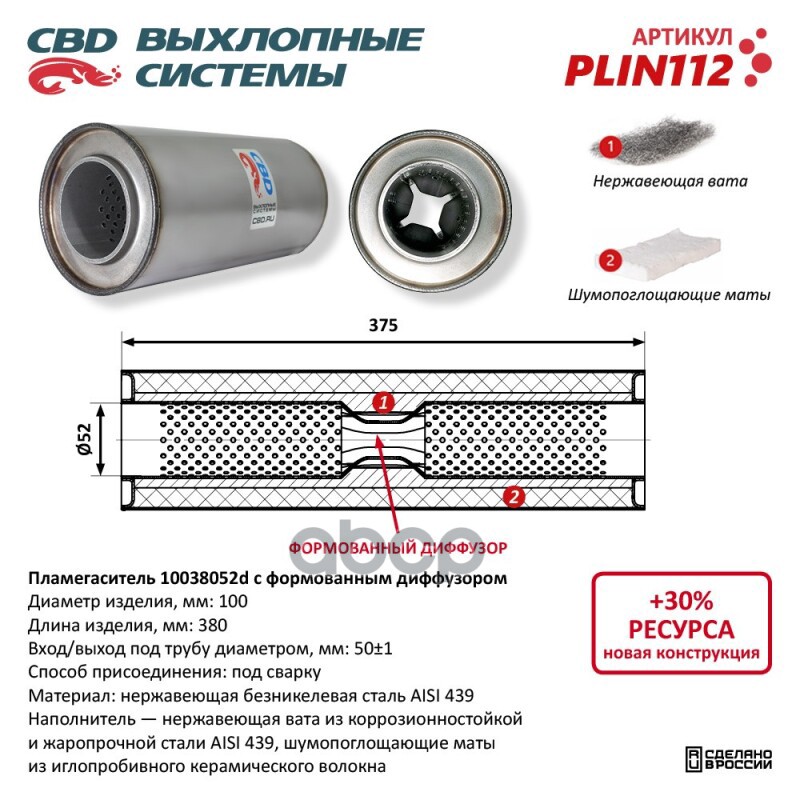 Чтобы купить Пламегаситель универсальный 10038052d с перфорированным диффузором, из Нержавеющей стали. CBD арт. PLIN112 оптом по цене 3109 руб., свяжитесь с поставщиком. Компания поставщик — For-cars (ИП «Иванов Алексей Валентинович») из города Москва. Доставка возможна самовывоз, транспортной компанией, авиатранспортом, железной дорогой. Способы оплаты: наличными, безналичная оплата, электронные деньги.