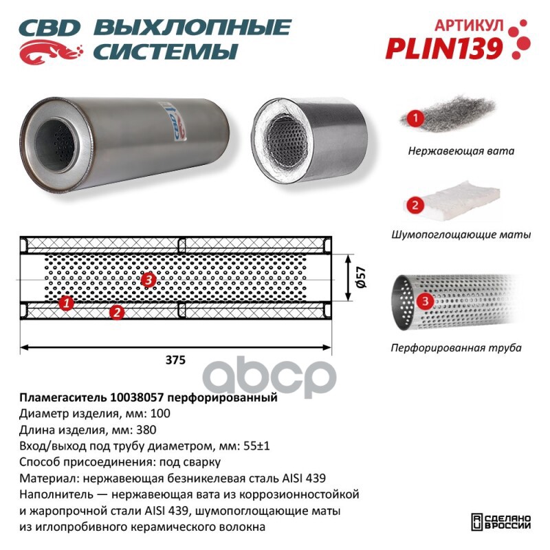 Чтобы купить Пламегаситель универсальный 10038057 перфорированный внутр. узел, из Нержавеющей стали. CBD арт. PLIN139 оптом по цене 3029 руб., свяжитесь с поставщиком. Компания поставщик — For-cars (ИП «Иванов Алексей Валентинович») из города Москва. Доставка возможна самовывоз, транспортной компанией, авиатранспортом, железной дорогой. Способы оплаты: наличными, безналичная оплата, электронные деньги.