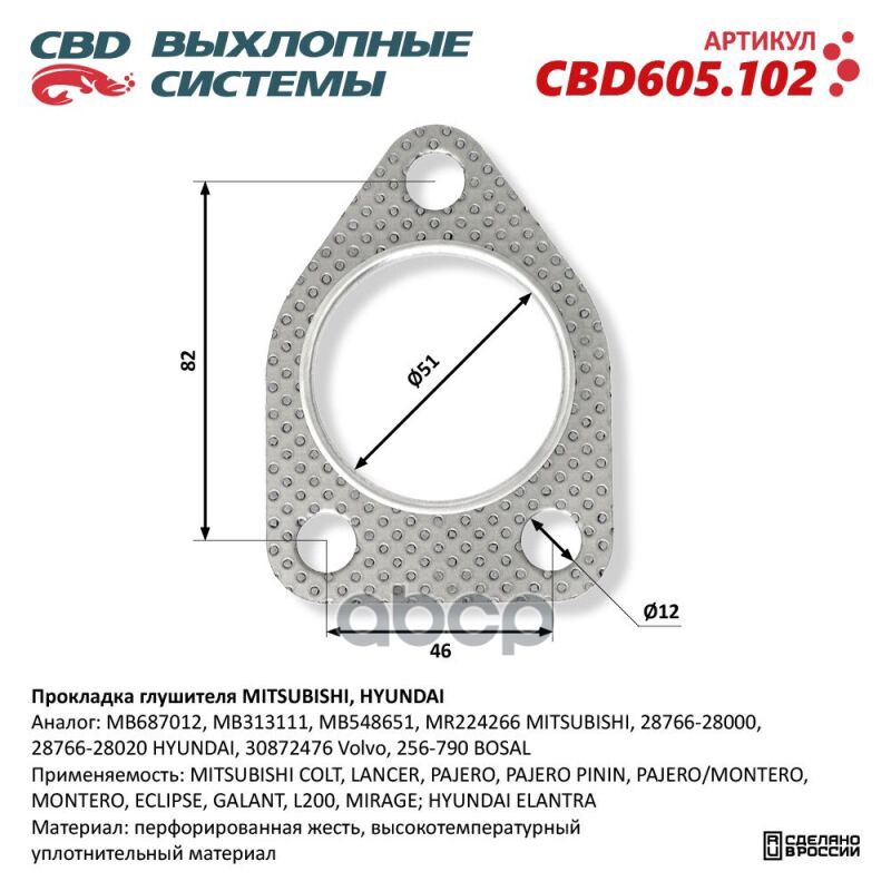 Прокладка глушителя MITSUBISHI, HYUNDAI. CBD605.10