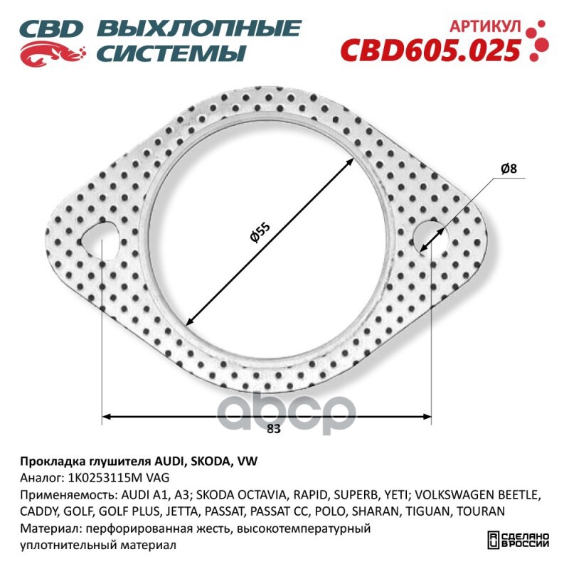 Чтобы купить Прокладка глушителя Прокладка глушителя AUDI, SKOD CBD арт. CBD605025 оптом по цене 126 руб., свяжитесь с поставщиком. Компания поставщик — For-cars (ИП «Иванов Алексей Валентинович») из города Москва. Доставка возможна самовывоз, транспортной компанией, авиатранспортом, железной дорогой. Способы оплаты: наличными, безналичная оплата, электронные деньги.