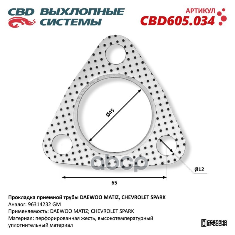 Чтобы купить Прокладка глушителя Прокладка приемной трубы DAEWO CBD арт. CBD605034 оптом по цене 132 руб., свяжитесь с поставщиком. Компания поставщик — For-cars (ИП «Иванов Алексей Валентинович») из города Москва. Доставка возможна самовывоз, транспортной компанией, авиатранспортом, железной дорогой. Способы оплаты: наличными, безналичная оплата, электронные деньги.