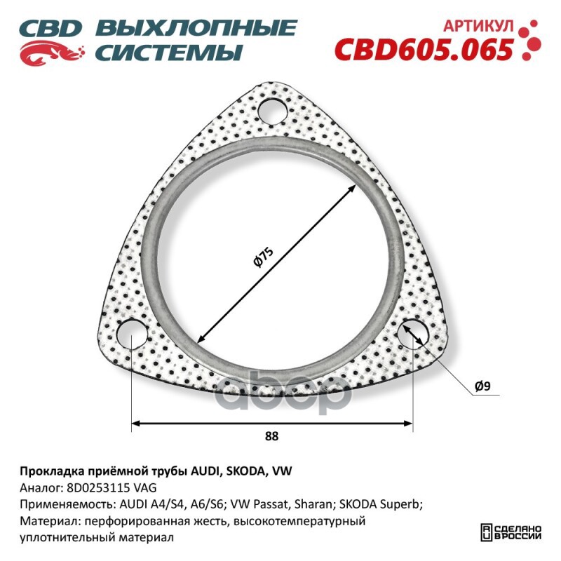 Чтобы купить Прокладка глушителя Прокладка приёмной трубы AUDI, CBD арт. CBD605065 оптом по цене 179 руб., свяжитесь с поставщиком. Компания поставщик — For-cars (ИП «Иванов Алексей Валентинович») из города Москва. Доставка возможна самовывоз, транспортной компанией, авиатранспортом, железной дорогой. Способы оплаты: наличными, безналичная оплата, электронные деньги.
