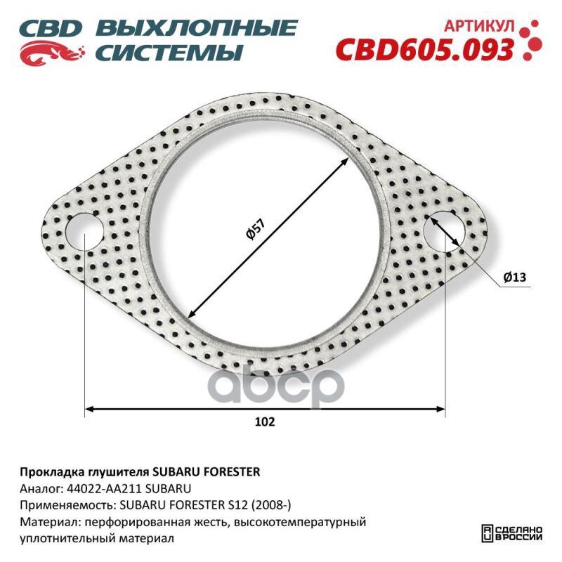 Чтобы купить Прокладка глушителя SUBARU FORESTER CBD арт. CBD605093 оптом по цене 132 руб., свяжитесь с поставщиком. Компания поставщик — For-cars (ИП «Иванов Алексей Валентинович») из города Москва. Доставка возможна самовывоз, транспортной компанией, авиатранспортом, железной дорогой. Способы оплаты: наличными, безналичная оплата, электронные деньги.