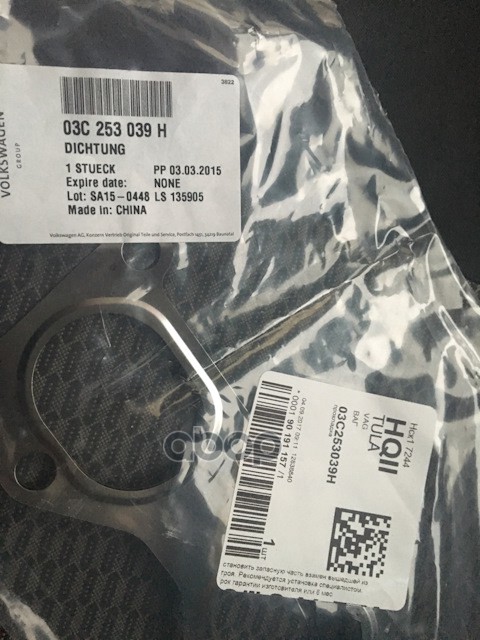 Чтобы купить Прокладка выпускного коллектора VAG арт. 03C253039H оптом по цене 1083 руб., свяжитесь с поставщиком. Компания поставщик — For-cars (ИП «Иванов Алексей Валентинович») из города Москва. Доставка возможна самовывоз, транспортной компанией, авиатранспортом, железной дорогой. Способы оплаты: наличными, безналичная оплата, электронные деньги.