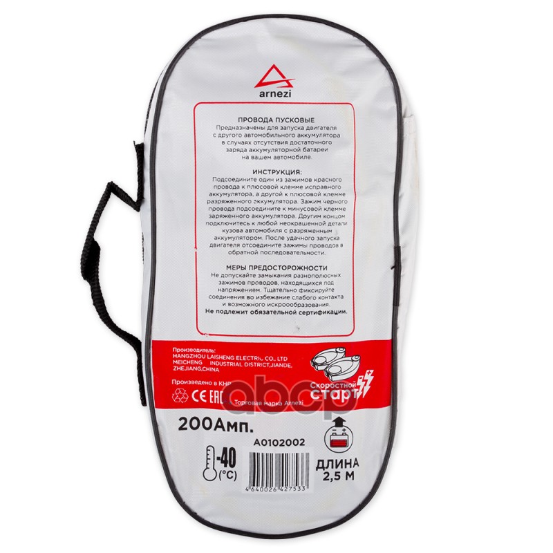 Чтобы купить Провода прикуривания АКБ 200А 12В жил 85шт ?8мм 2, ARNEZI арт. A0102002 оптом по цене 587 руб., свяжитесь с поставщиком. Компания поставщик — For-cars (ИП «Иванов Алексей Валентинович») из города Москва. Доставка возможна самовывоз, транспортной компанией, авиатранспортом, железной дорогой. Способы оплаты: наличными, безналичная оплата, электронные деньги.