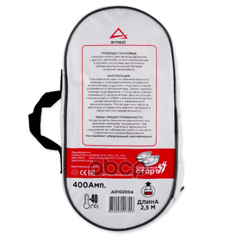 Чтобы купить Провода прикуривания АКБ 400А 12В/24В жил 170шт ?9 ARNEZI арт. A0102004 оптом по цене 798 руб., свяжитесь с поставщиком. Компания поставщик — For-cars (ИП «Иванов Алексей Валентинович») из города Москва. Доставка возможна самовывоз, транспортной компанией, авиатранспортом, железной дорогой. Способы оплаты: наличными, безналичная оплата, электронные деньги.