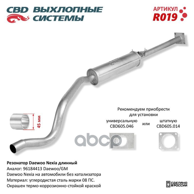Чтобы купить Резонатор Daewoo Nexia длинный 96184413. CBD. CBD арт. R019 оптом по цене 3102 руб., свяжитесь с поставщиком. Компания поставщик — For-cars (ИП «Иванов Алексей Валентинович») из города Москва. Доставка возможна самовывоз, транспортной компанией, авиатранспортом, железной дорогой. Способы оплаты: наличными, безналичная оплата, электронные деньги.