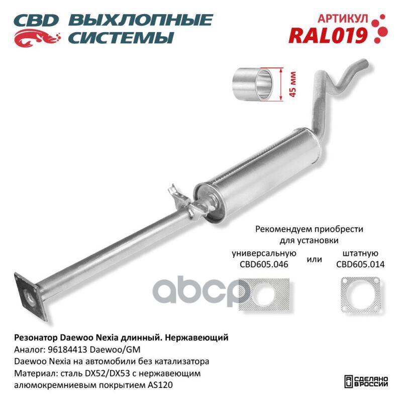 Чтобы купить Резонатор daewoo nexia на ам без катализатора, алюминизированная сталь CBD арт. RAL019 оптом по цене 3735 руб., свяжитесь с поставщиком. Компания поставщик — For-cars (ИП «Иванов Алексей Валентинович») из города Москва. Доставка возможна самовывоз, транспортной компанией, авиатранспортом, железной дорогой. Способы оплаты: наличными, безналичная оплата, электронные деньги.
