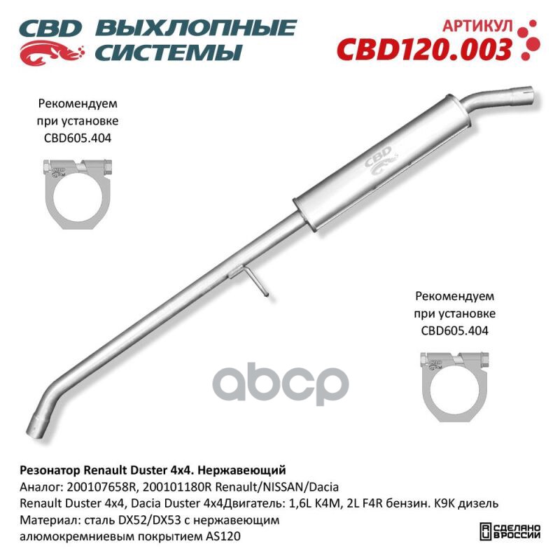 Чтобы купить Резонатор Duster 4x4’CBD’ (нерж.) 200107658R CBD арт. CBD120003 оптом по цене 3652 руб., свяжитесь с поставщиком. Компания поставщик — For-cars (ИП «Иванов Алексей Валентинович») из города Москва. Доставка возможна самовывоз, транспортной компанией, авиатранспортом, железной дорогой. Способы оплаты: наличными, безналичная оплата, электронные деньги.
