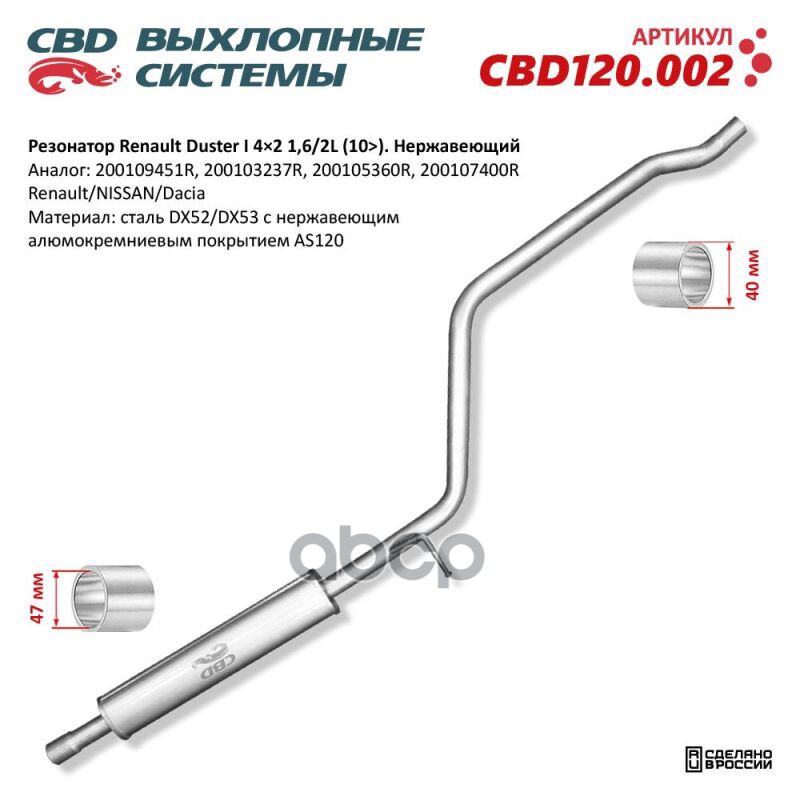 Чтобы купить Резонатор глушителя CBD арт. CBD120002 оптом по цене 3969 руб., свяжитесь с поставщиком. Компания поставщик — For-cars (ИП «Иванов Алексей Валентинович») из города Москва. Доставка возможна самовывоз, транспортной компанией, авиатранспортом, железной дорогой. Способы оплаты: наличными, безналичная оплата, электронные деньги.