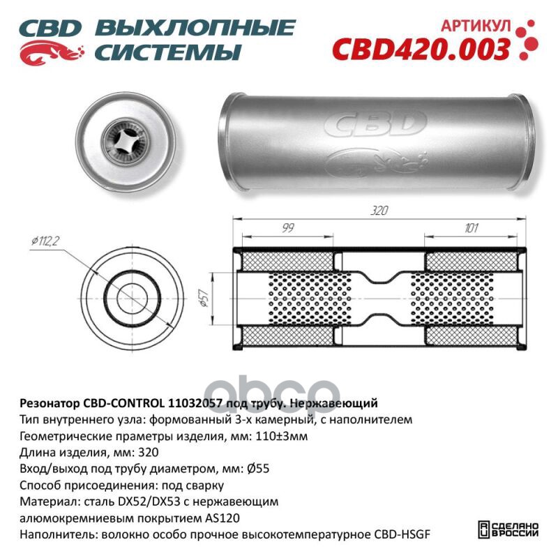 Чтобы купить Резонатор глушителя универсальный CBD арт. CBD420003 оптом по цене 2171 руб., свяжитесь с поставщиком. Компания поставщик — For-cars (ИП «Иванов Алексей Валентинович») из города Москва. Доставка возможна самовывоз, транспортной компанией, авиатранспортом, железной дорогой. Способы оплаты: наличными, безналичная оплата, электронные деньги.