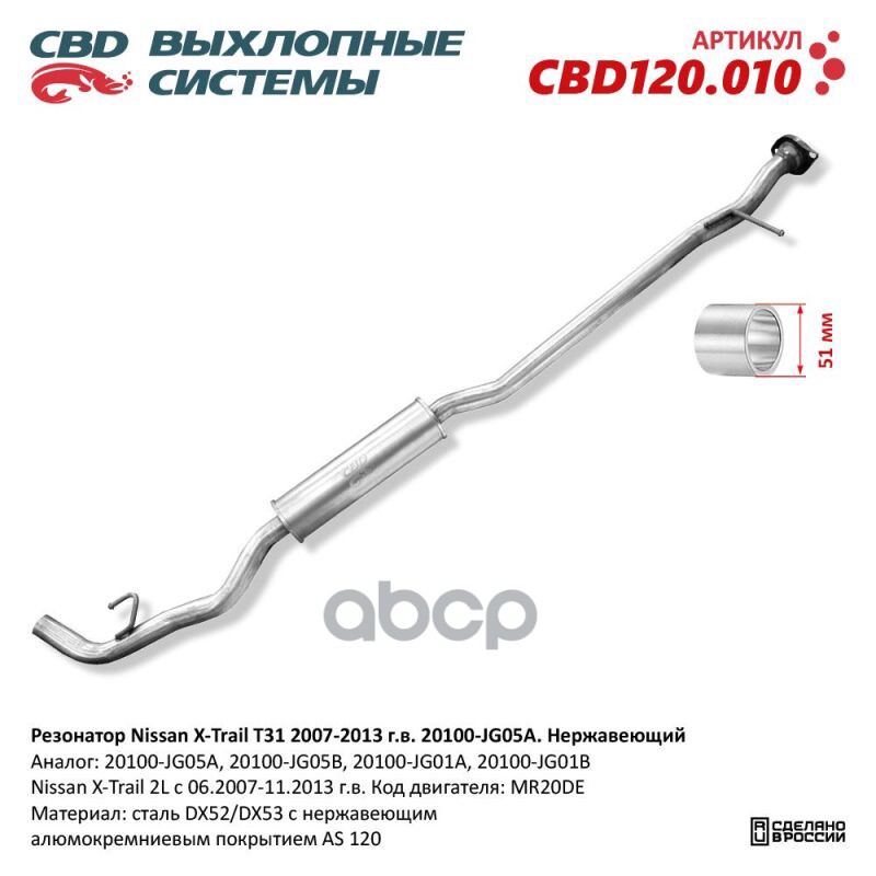 Чтобы купить Резонатор Nissan X-Trail T31 2007-2013 г.в. 20100-JG05A. Нержавеющий. CBD арт. CBD120010 оптом по цене 4922 руб., свяжитесь с поставщиком. Компания поставщик — For-cars (ИП «Иванов Алексей Валентинович») из города Москва. Доставка возможна самовывоз, транспортной компанией, авиатранспортом, железной дорогой. Способы оплаты: наличными, безналичная оплата, электронные деньги.