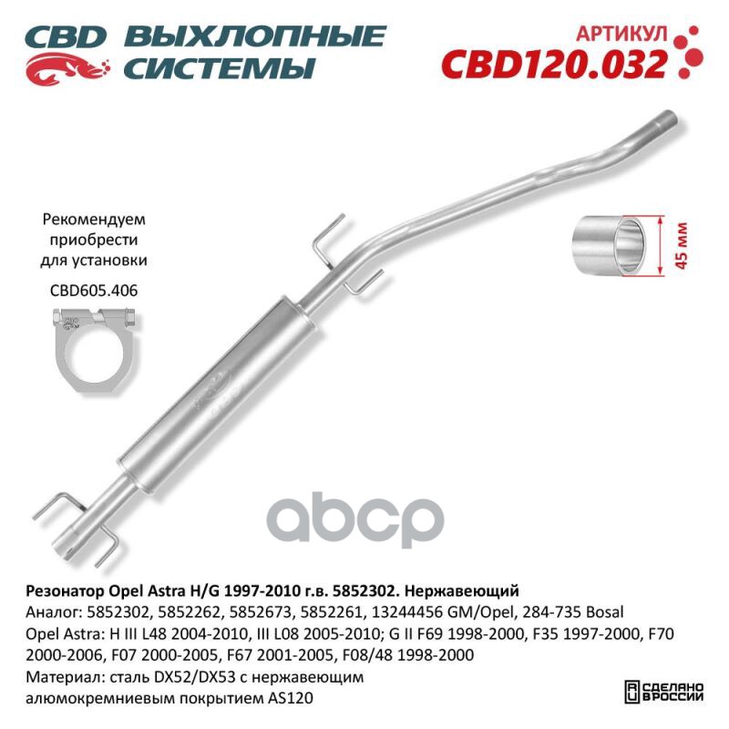 Чтобы купить Резонатор Opel Astra H/G 1997-2010 г.в. 5852302. Нержавеющий. CBD арт. CBD120032 оптом по цене 4104 руб., свяжитесь с поставщиком. Компания поставщик — For-cars (ИП «Иванов Алексей Валентинович») из города Москва. Доставка возможна самовывоз, транспортной компанией, авиатранспортом, железной дорогой. Способы оплаты: наличными, безналичная оплата, электронные деньги.