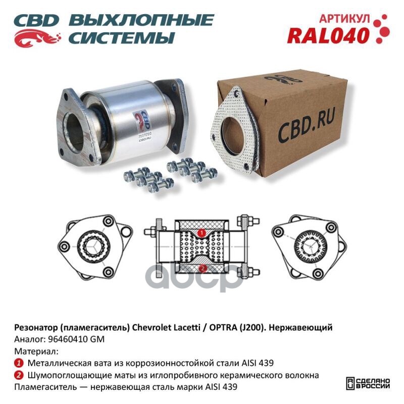Чтобы купить Резонатор (пламегаситель) Chevrolet Lacetti /OPTRA CBD арт. RAL040 оптом по цене 3180 руб., свяжитесь с поставщиком. Компания поставщик — For-cars (ИП «Иванов Алексей Валентинович») из города Москва. Доставка возможна самовывоз, транспортной компанией, авиатранспортом, железной дорогой. Способы оплаты: наличными, безналичная оплата, электронные деньги.