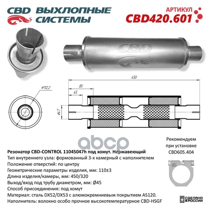 Резонатор универсальный 11045047h под хомут. ‘CBD’ (нерж.)