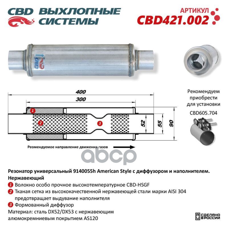 Чтобы купить Резонатор универсальный American Style 9140055h с диффузором и наполнителем. Нержавеющий. CBD арт. CBD421002 оптом по цене 2204 руб., свяжитесь с поставщиком. Компания поставщик — For-cars (ИП «Иванов Алексей Валентинович») из города Москва. Доставка возможна самовывоз, транспортной компанией, авиатранспортом, железной дорогой. Способы оплаты: наличными, безналичная оплата, электронные деньги.