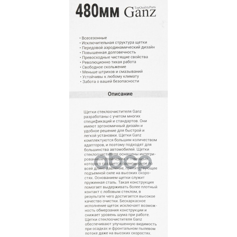 Чтобы купить Щетка стеклоочистителя 480 мм бескаркасная 1 шт (8 GANZ арт. GIS01018 оптом по цене 435 руб., свяжитесь с поставщиком. Компания поставщик — For-cars (ИП «Иванов Алексей Валентинович») из города Москва. Доставка возможна самовывоз, транспортной компанией, авиатранспортом, железной дорогой. Способы оплаты: наличными, безналичная оплата, электронные деньги.