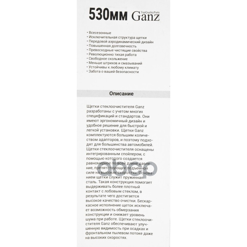 Чтобы купить Щетка стеклоочистителя 530 мм бескаркасная 1 шт (8 GANZ арт. GIS01020 оптом по цене 481 руб., свяжитесь с поставщиком. Компания поставщик — For-cars (ИП «Иванов Алексей Валентинович») из города Москва. Доставка возможна самовывоз, транспортной компанией, авиатранспортом, железной дорогой. Способы оплаты: наличными, безналичная оплата, электронные деньги.
