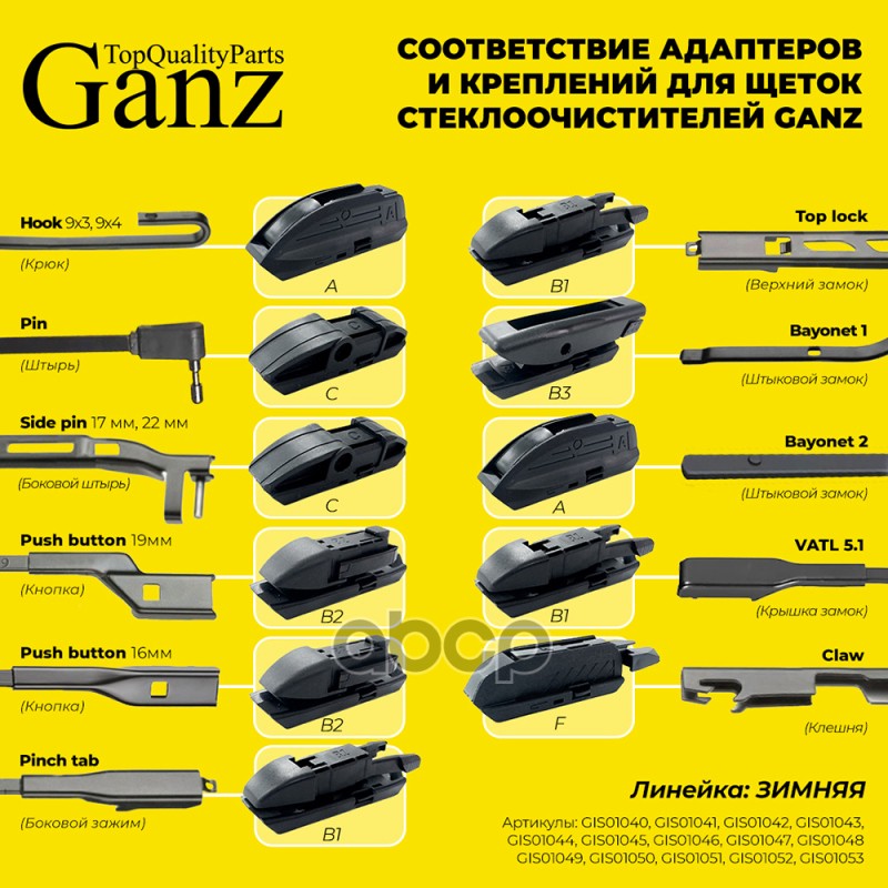 Чтобы купить Щетка стеклоочистителя GANZ арт. GIS01050 оптом по цене 491 руб., свяжитесь с поставщиком. Компания поставщик — For-cars (ИП «Иванов Алексей Валентинович») из города Москва. Доставка возможна самовывоз, транспортной компанией, авиатранспортом, железной дорогой. Способы оплаты: наличными, безналичная оплата, электронные деньги.