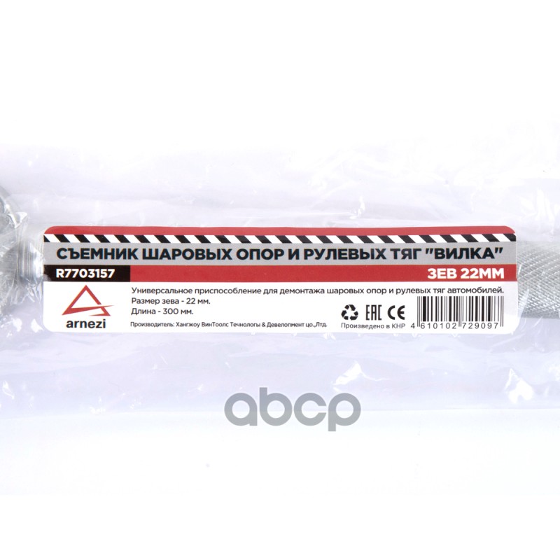 Чтобы купить Съёмник шаровых опор и рулевых наконечников вилка зев 22 мм ARNEZI арт. R7703157 оптом по цене 693 руб., свяжитесь с поставщиком. Компания поставщик — For-cars (ИП «Иванов Алексей Валентинович») из города Москва. Доставка возможна самовывоз, транспортной компанией, авиатранспортом, железной дорогой. Способы оплаты: наличными, безналичная оплата, электронные деньги.