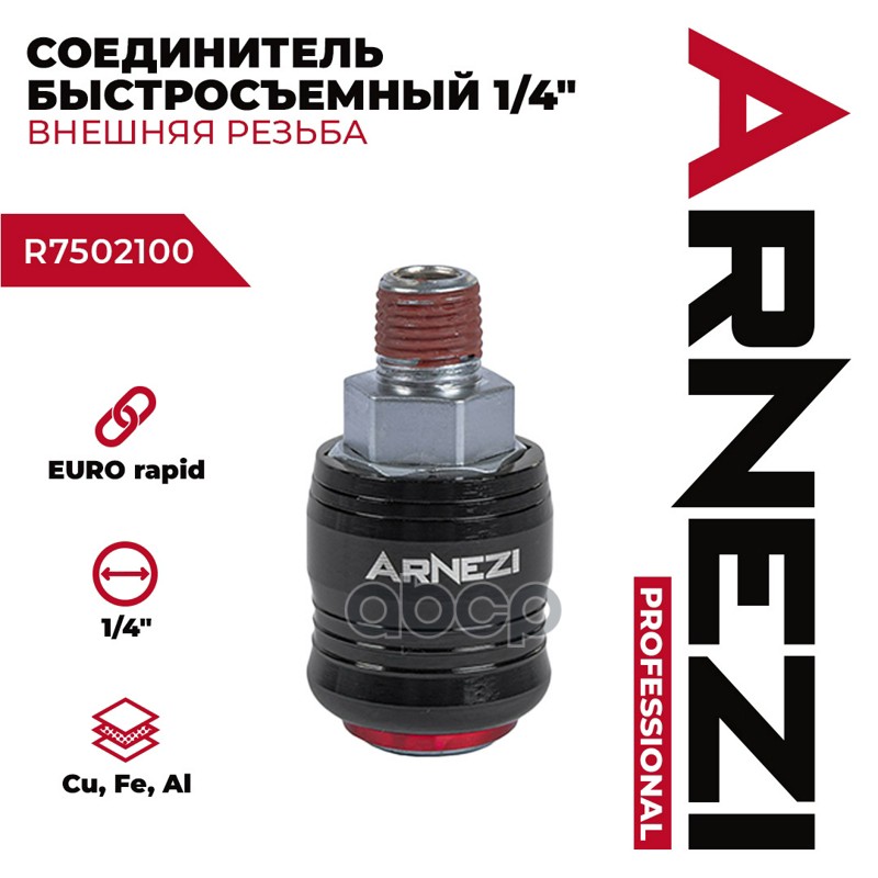 Соединитель быстросъемный 1⁄4, внешняя резьба, европейский стандарт Arnezi.