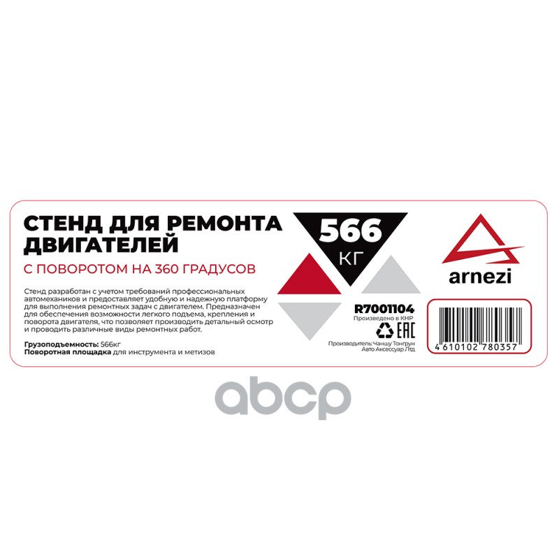 Чтобы купить Стенд для ремонта двигателей 566кг с поворотом на 360 градусов ARNEZI арт. R7001104 оптом по цене 9496 руб., свяжитесь с поставщиком. Компания поставщик — For-cars (ИП «Иванов Алексей Валентинович») из города Москва. Доставка возможна самовывоз, транспортной компанией, авиатранспортом, железной дорогой. Способы оплаты: наличными, безналичная оплата, электронные деньги.