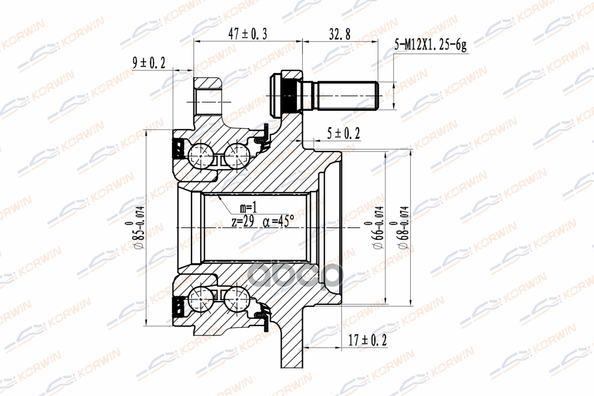 Ступица колеса KORWIN передняя с ABS NISSAN: X-Trail 2.0i/2.5i/1.6dCi 14-