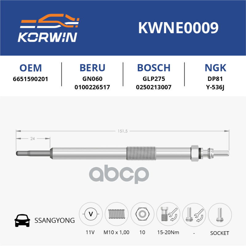 Чтобы купить Свеча накаливания SsangYong пр. Турция KORWIN арт. KWNE0009 оптом по цене 580 руб., свяжитесь с поставщиком. Компания поставщик — For-cars (ИП «Иванов Алексей Валентинович») из города Москва. Доставка возможна самовывоз, транспортной компанией, авиатранспортом, железной дорогой. Способы оплаты: наличными, безналичная оплата, электронные деньги.