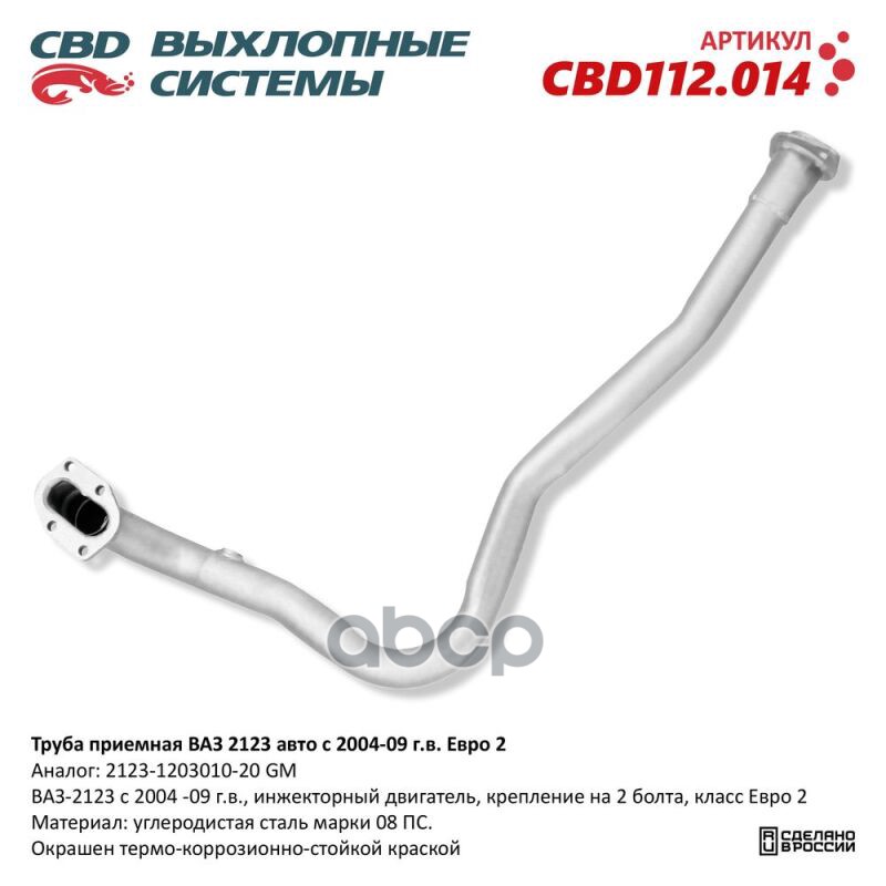Чтобы купить Труба приемная 2123 ‘CBD’ (с 2003-08 г.) CBD арт. CBD112014 оптом по цене 2641 руб., свяжитесь с поставщиком. Компания поставщик — For-cars (ИП «Иванов Алексей Валентинович») из города Москва. Доставка возможна самовывоз, транспортной компанией, авиатранспортом, железной дорогой. Способы оплаты: наличными, безналичная оплата, электронные деньги.