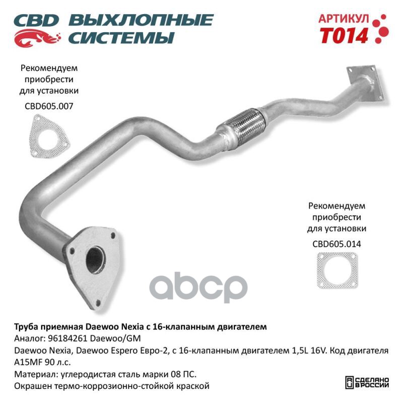 Чтобы купить Труба приемная Daewoo Nexia 16 клап. двиг. CBD. CBD арт. T014 оптом по цене 2951 руб., свяжитесь с поставщиком. Компания поставщик — For-cars (ИП «Иванов Алексей Валентинович») из города Москва. Доставка возможна самовывоз, транспортной компанией, авиатранспортом, железной дорогой. Способы оплаты: наличными, безналичная оплата, электронные деньги.