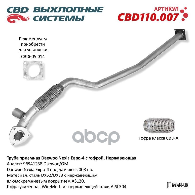 Чтобы купить Труба приемная Daewoo Nexia Е4 96941238 с гофрой под датчик Нерж сталь. CBD арт. CBD110007 оптом по цене 4870 руб., свяжитесь с поставщиком. Компания поставщик — For-cars (ИП «Иванов Алексей Валентинович») из города Москва. Доставка возможна самовывоз, транспортной компанией, авиатранспортом, железной дорогой. Способы оплаты: наличными, безналичная оплата, электронные деньги.