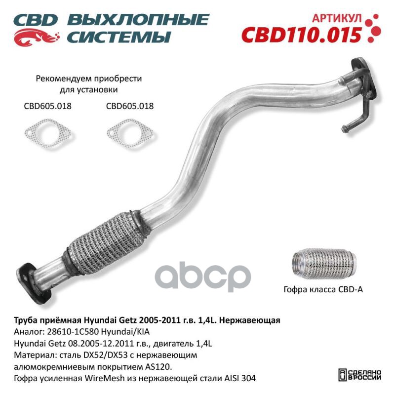 Труба приемная Hyundai Getz 2002-11 г.в. ‘CBD’ (нерж.) 28610-1C580