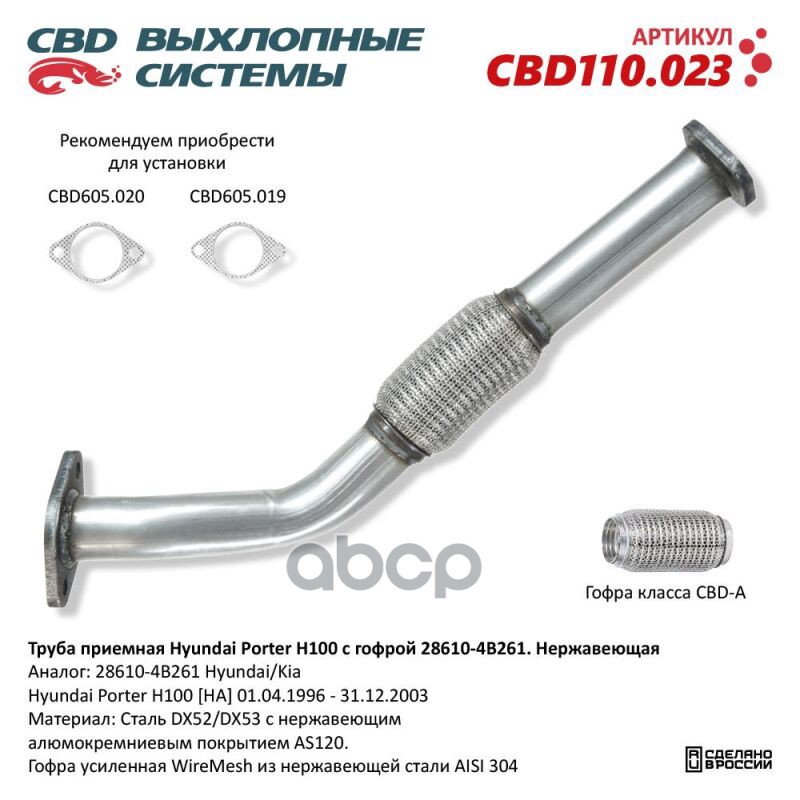Чтобы купить Труба приемная Hyundai Роrter H100 с гофрой 28610-4B261 Нержавеющая. CBD арт. CBD110023 оптом по цене 3905 руб., свяжитесь с поставщиком. Компания поставщик — For-cars (ИП «Иванов Алексей Валентинович») из города Москва. Доставка возможна самовывоз, транспортной компанией, авиатранспортом, железной дорогой. Способы оплаты: наличными, безналичная оплата, электронные деньги.