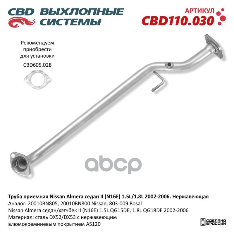 Чтобы купить Труба приемная Nissan Almera седан II (N16E) 1.5L/1.8L 2002-2006 Clacic CBD арт. CBD110030 оптом по цене 2423 руб., свяжитесь с поставщиком. Компания поставщик — For-cars (ИП «Иванов Алексей Валентинович») из города Москва. Доставка возможна самовывоз, транспортной компанией, авиатранспортом, железной дорогой. Способы оплаты: наличными, безналичная оплата, электронные деньги.