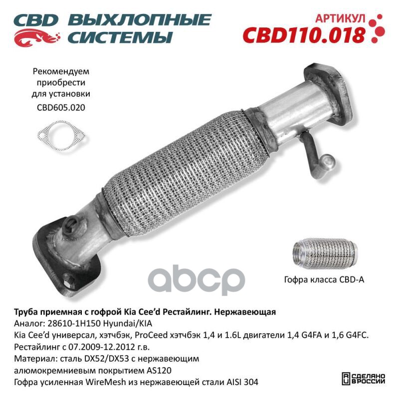 Чтобы купить Труба приемная с гофрой 28610-1H150 Kia Cee’d Рестайлинг. Нерж. (Росси CBD арт. CBD110018 оптом по цене 4214 руб., свяжитесь с поставщиком. Компания поставщик — For-cars (ИП «Иванов Алексей Валентинович») из города Москва. Доставка возможна самовывоз, транспортной компанией, авиатранспортом, железной дорогой. Способы оплаты: наличными, безналичная оплата, электронные деньги.