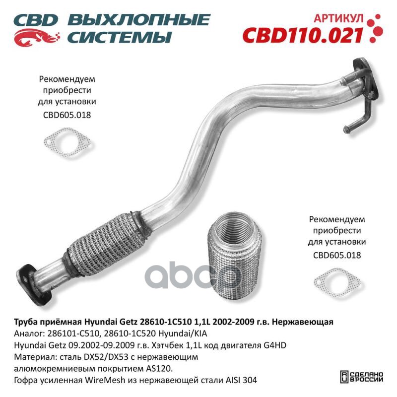 Чтобы купить Труба приёмная Hyundai Getz 28610-1C510 11L 2002-09 г.в. Нержавеющая CBD арт. CBD110021 оптом по цене 4121 руб., свяжитесь с поставщиком. Компания поставщик — For-cars (ИП «Иванов Алексей Валентинович») из города Москва. Доставка возможна самовывоз, транспортной компанией, авиатранспортом, железной дорогой. Способы оплаты: наличными, безналичная оплата, электронные деньги.