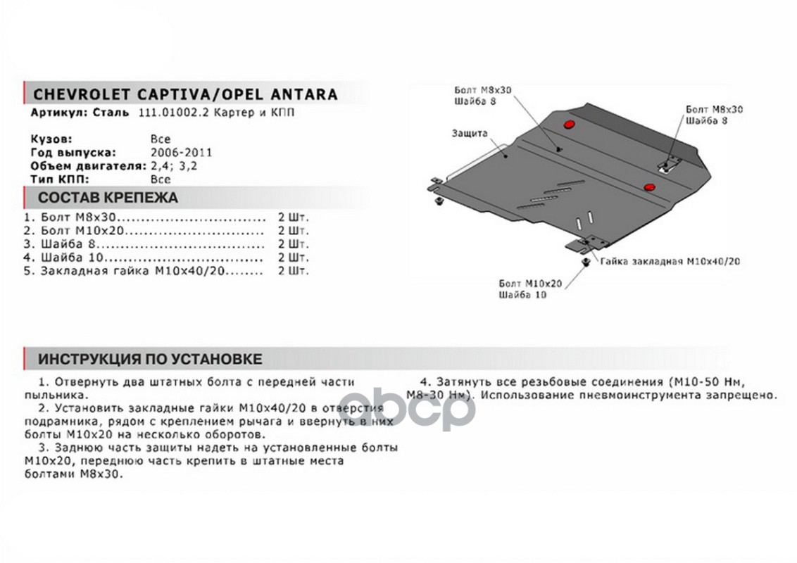 Защита картера Chevrolet Captiva 2006-2011, V - 2.4, 3.2/Opel Antara 2006-2011, V - 2.4, 3.2 с креп. ‘АвтоБРОНЯ’