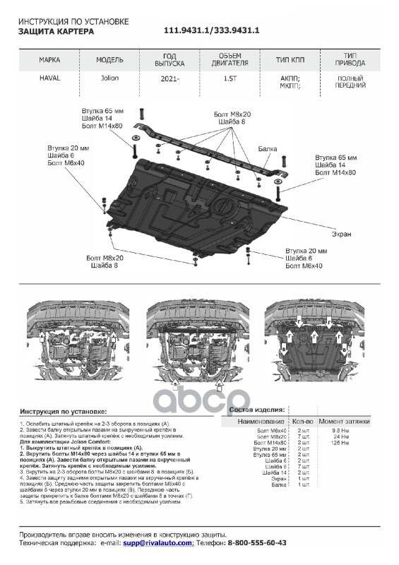 Чтобы купить Защита картера+КПП+ комплект крепежа Rival, Алюминий Haval Jolion 2021-,1.5Т, МК Rival арт. 33394311 оптом по цене 9557 руб., свяжитесь с поставщиком. Компания поставщик — For-cars (ИП «Иванов Алексей Валентинович») из города Москва. Доставка возможна самовывоз, транспортной компанией, авиатранспортом, железной дорогой. Способы оплаты: наличными, безналичная оплата, электронные деньги.