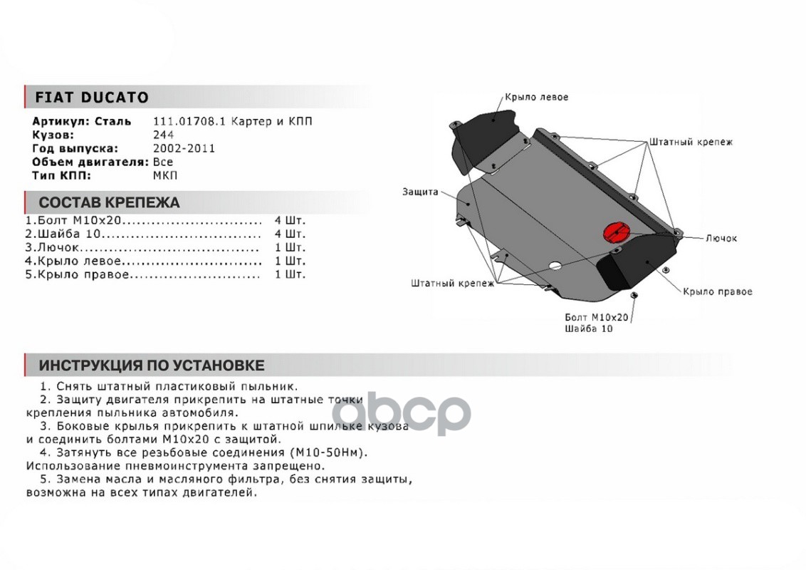 Чтобы купить Защита картера+КПП! сталь 1.8мм Fiat Ducato II 2.3D 02-11 Автоброня арт. 111017081 оптом по цене 5543 руб., свяжитесь с поставщиком. Компания поставщик — For-cars (ИП «Иванов Алексей Валентинович») из города Москва. Доставка возможна самовывоз, транспортной компанией, авиатранспортом, железной дорогой. Способы оплаты: наличными, безналичная оплата, электронные деньги.