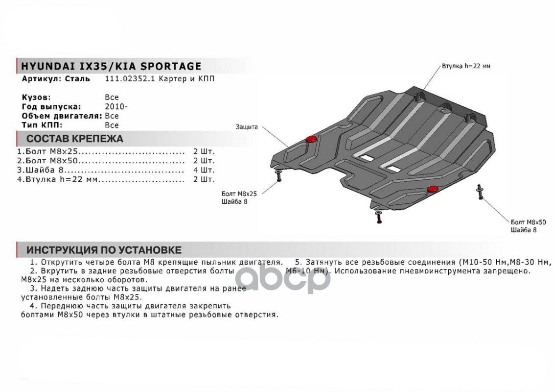 Чтобы купить Защита картера+КПП! сталь 1.8мм Hyundai ix35 10-15, Kia Sportage III 10-16 Автоброня арт. 111023521 оптом по цене 3028 руб., свяжитесь с поставщиком. Компания поставщик — For-cars (ИП «Иванов Алексей Валентинович») из города Москва. Доставка возможна самовывоз, транспортной компанией, авиатранспортом, железной дорогой. Способы оплаты: наличными, безналичная оплата, электронные деньги.