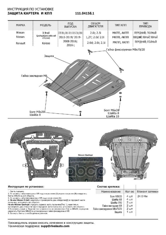 Защита картера+КППсталь 1.5 ммNissan Qashqai RU 1.2T, 2.0 15-19, Qashqai 2.0 4WD 19>