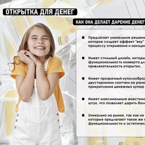 Открытки-конверты для денег — идеальный выбор для тех, кто хочет создать незабываемый сюрприз своим близким на день рождения, юбилей или любое значимое событие. Стильный дизайн наших изделий сочетает удобство хранения денежных подарков с привлекательным внешним видом традиционной поздравительной открытки.