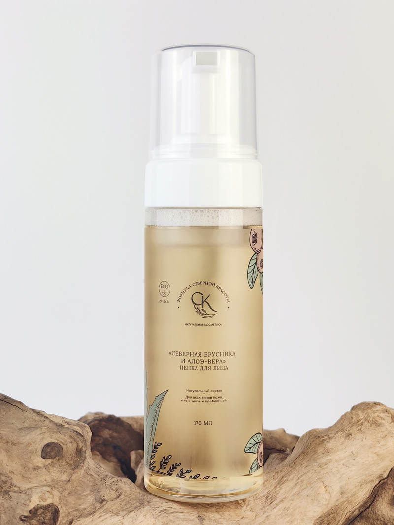 Познакомьтесь с силой дикой природы Русского Севера! Наша нежная пенка для умывания объединила чистоту арктической воды, антиоксидантную мощь брусники и увлажняющую силу алоэ-вера. Это идеальный первый шаг в вашем ритуале красоты для мягкого, но эффективного очищения всех типов кожи, включая чувствительную и склонную к куперозу.